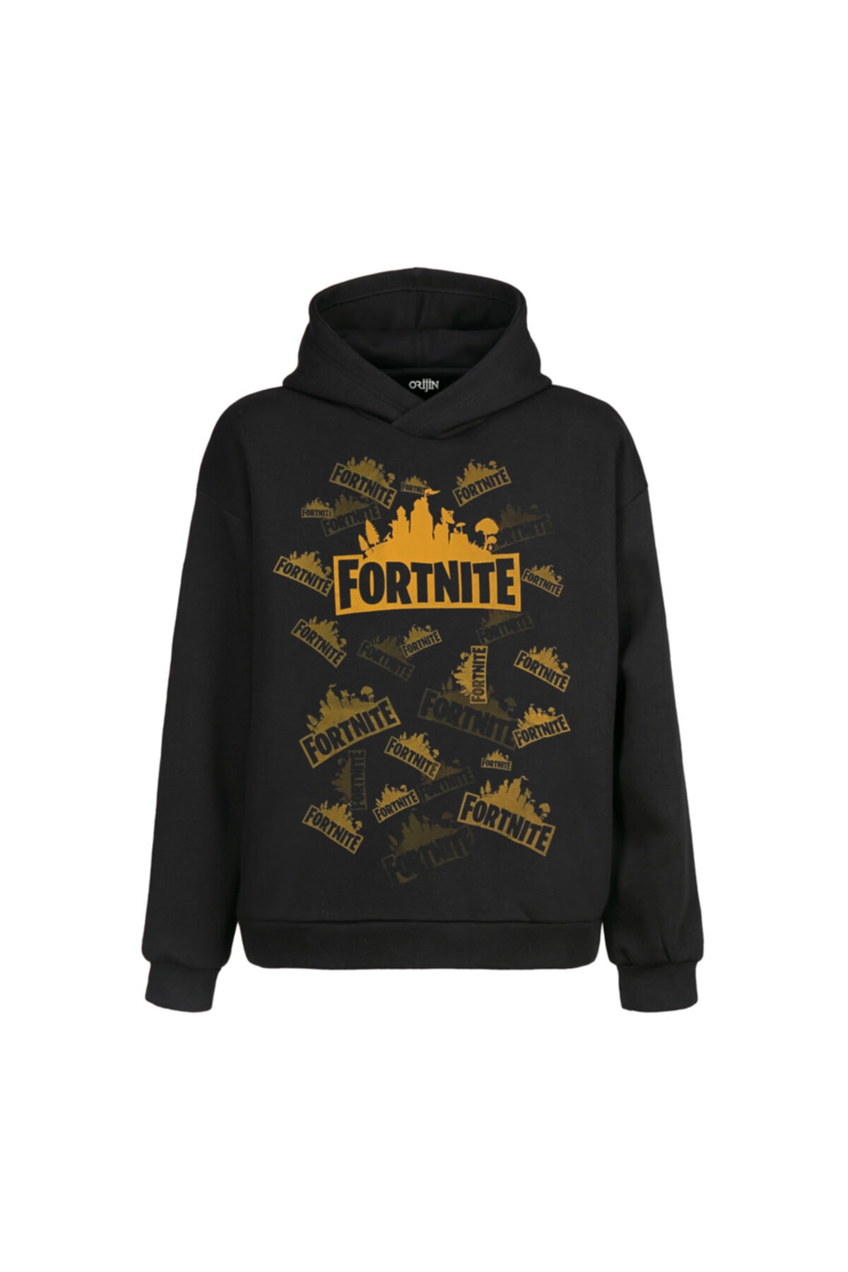 Erkek Siyah Fortnite Logo Kapüşonlu Sweatshirt