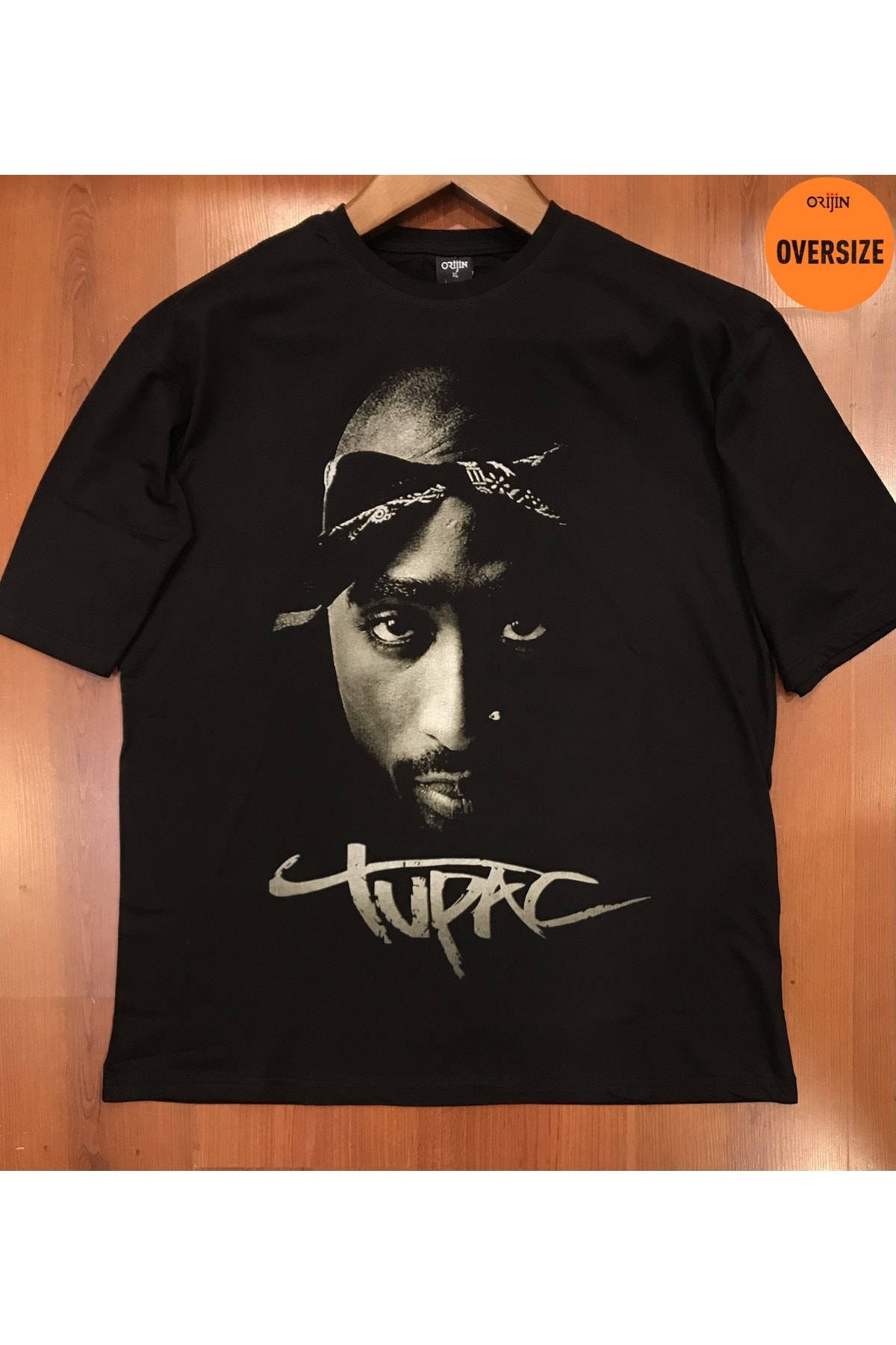 2pac Tupac Baskılı Oversize Siyah Tshirt