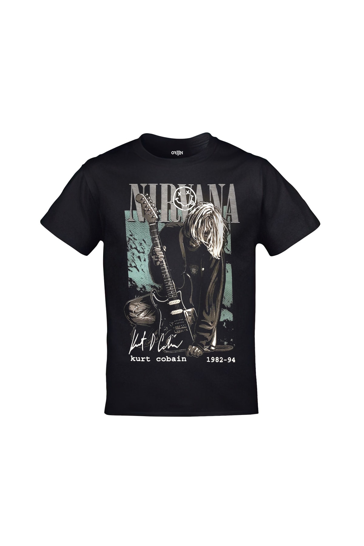 Nirvana Kurt Cobain 1982-94 Baskılı Unisex Siyah Tshirt