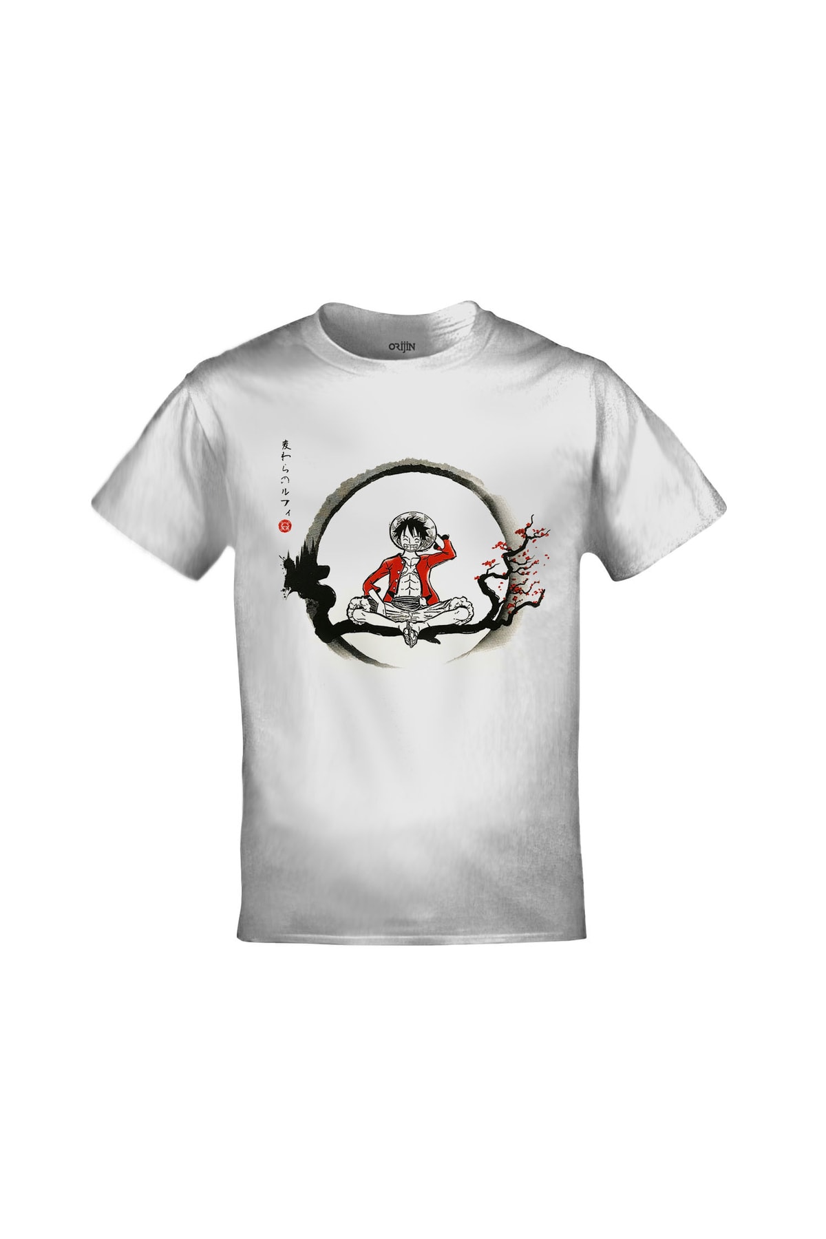 One Piece Monkey D. Luffy Ağaç Baskılı Unisex Beyaz Tshirt