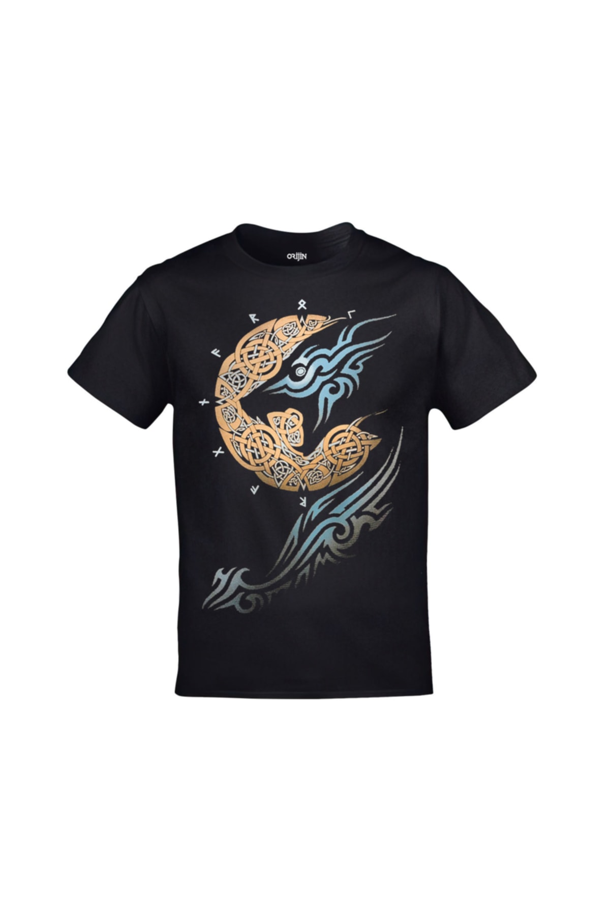 Ragnarok Moon Vikings Baskılı Unisex Siyah Tshirt
