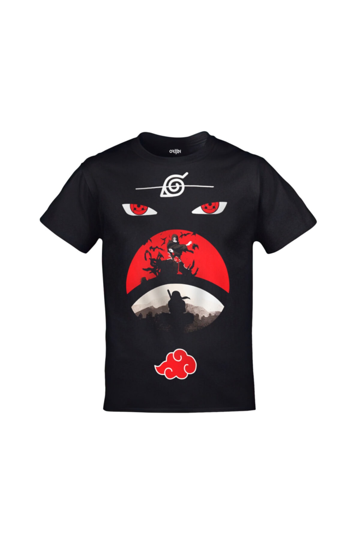 Naruto Itachi Uchiha Sasuke Baskılı Unisex Siyah Tshirt