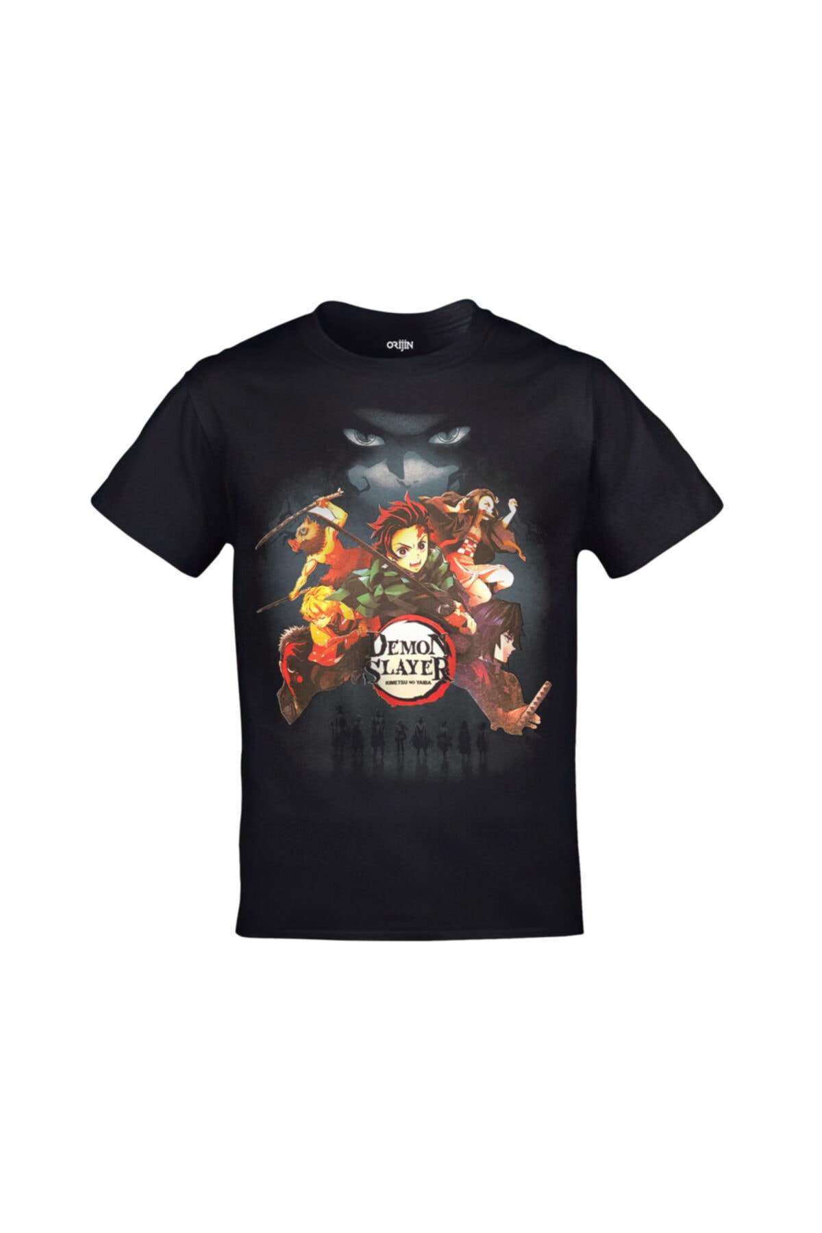 Demon Slayer Kimetsu No Yaiba Anime Ön Arka Baskılı Unisex Siyah Tshirt
