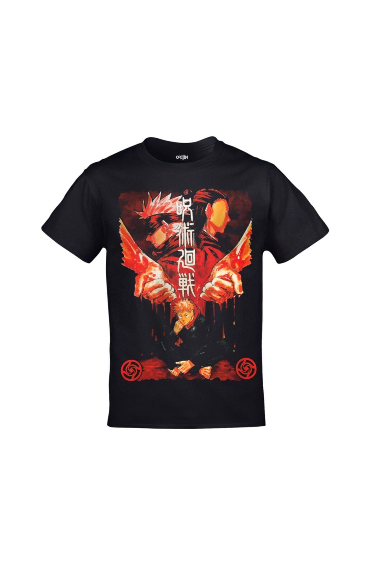 Jujutsu Kaisen Karakterler Ön Arka Baskılı Unisex Siyah Tshirt