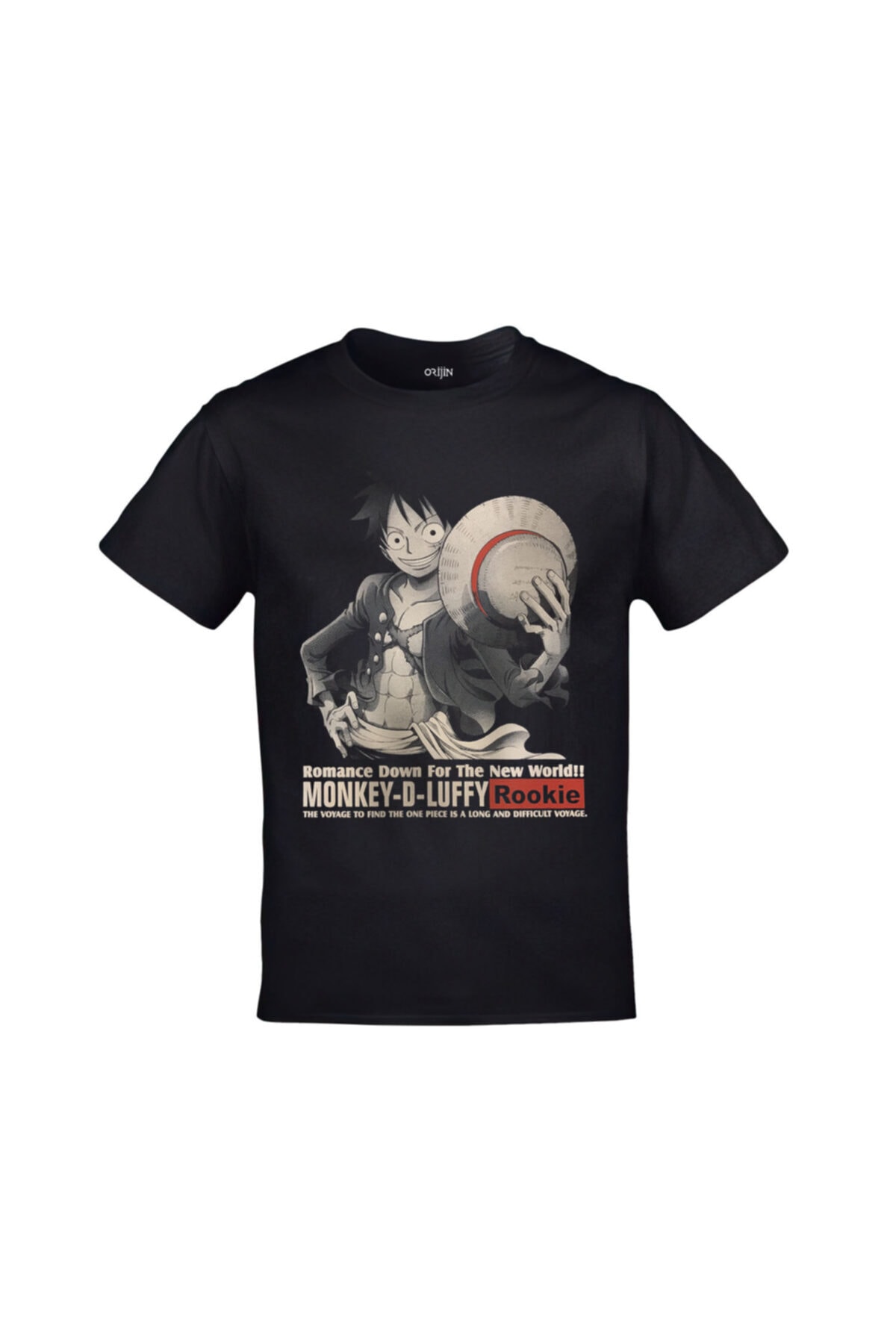One Piece Monkey D Luffy Rookie Baskılı Unisex Siyah Tshirt