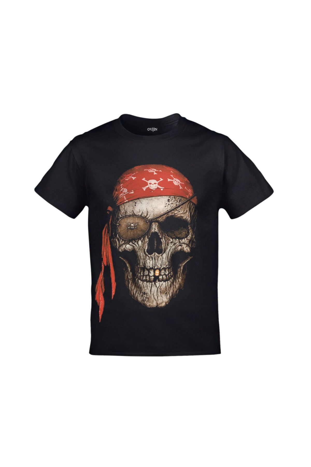 Bandanalı Korsan Kurukafa Baskılı Unisex Siyah Tshirt