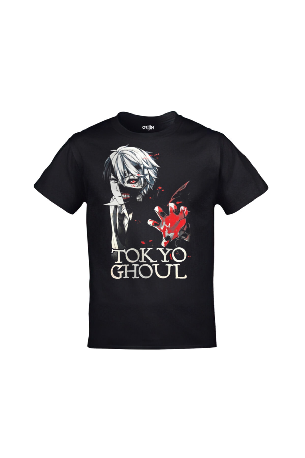 Unisex Siyah Tokyo Ghoul Baskılı T-Shirt