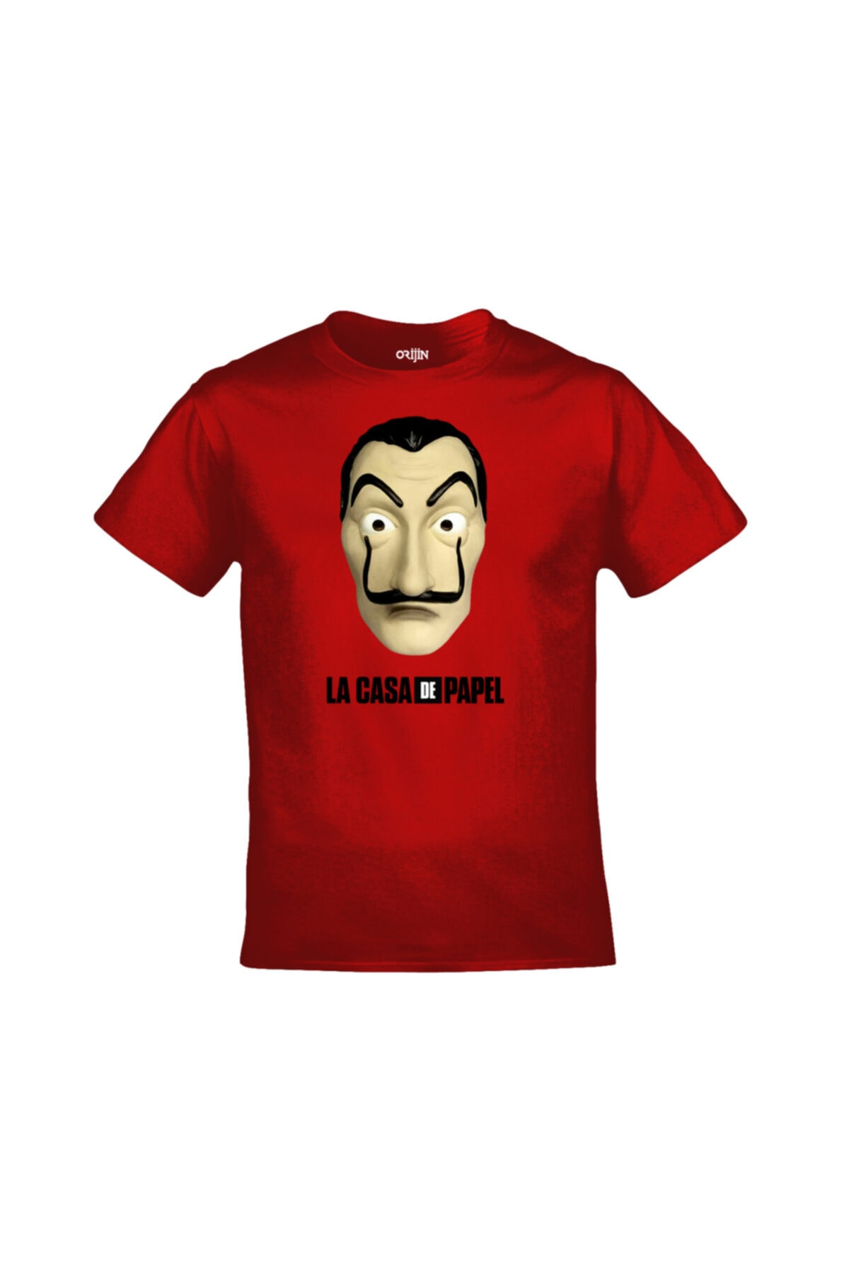 Unisex Kırmızı La Casa De Papel – Salvador Dali Maske Baskılı Tshirt