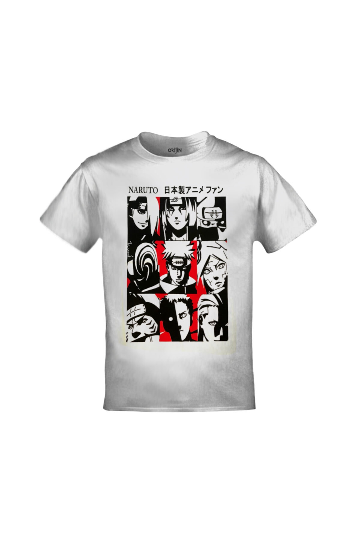 Unisex Beyaz Naruto Kare Baskılı Tshirt
