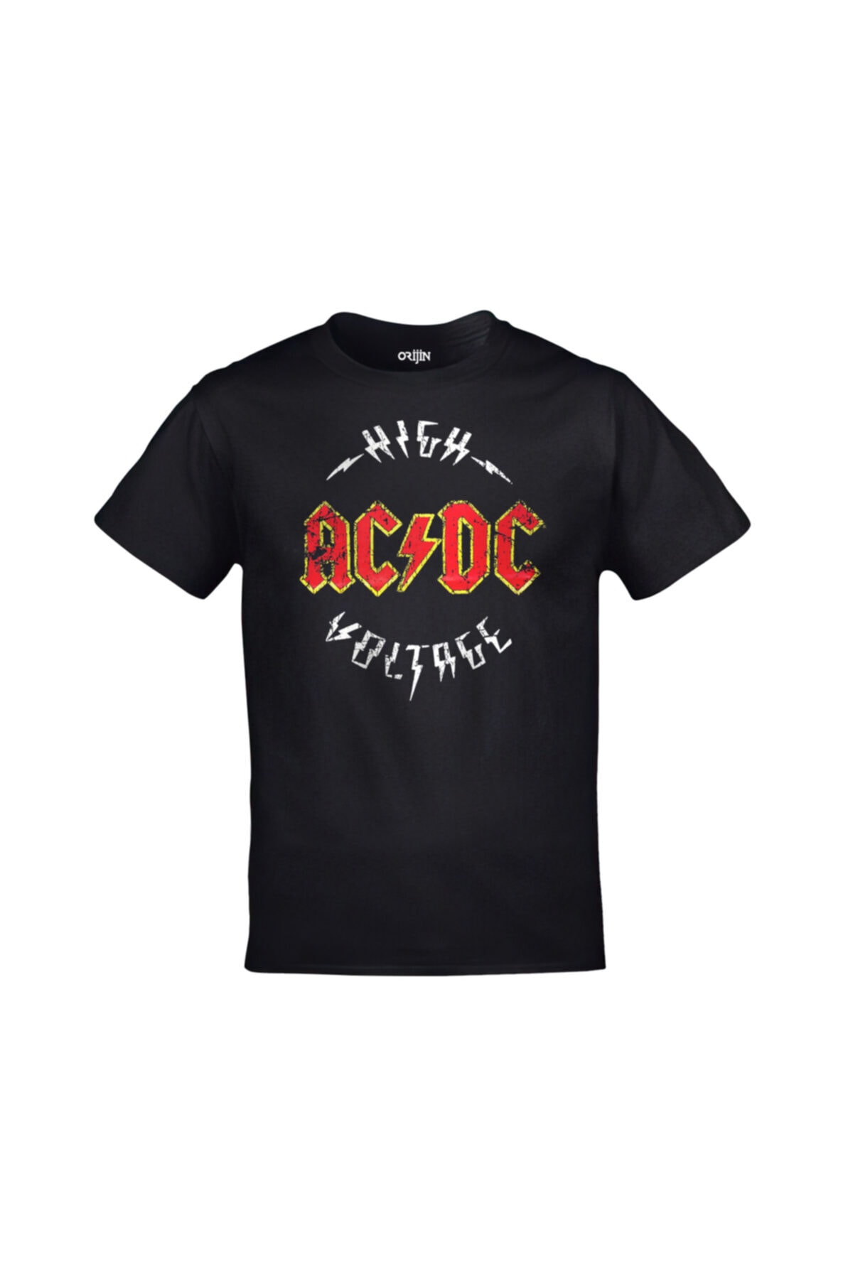 Unisex Siyah Ac Dc High Voltage Baskılı Tshirt