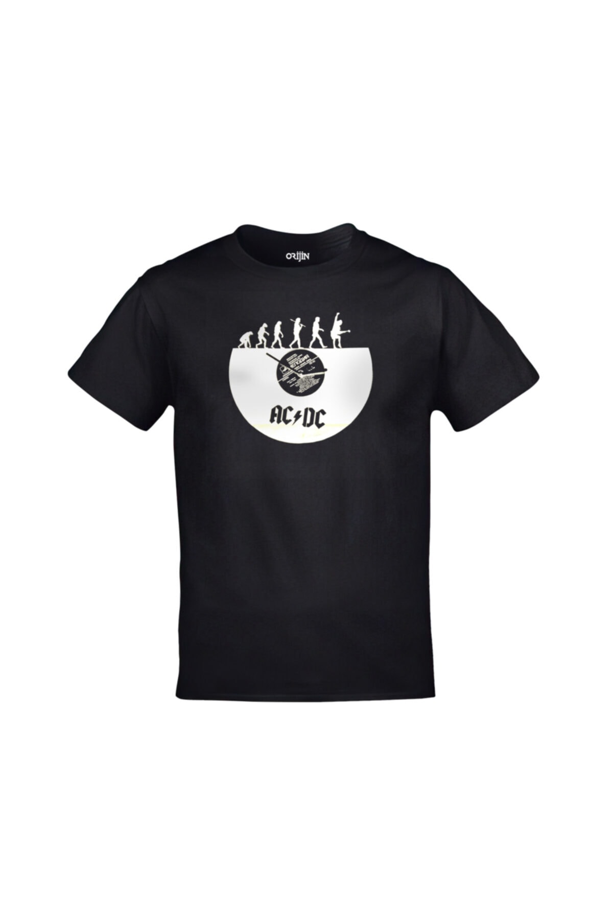 Unisex Siyah Ac Dc Gitar Baskılı Tişört