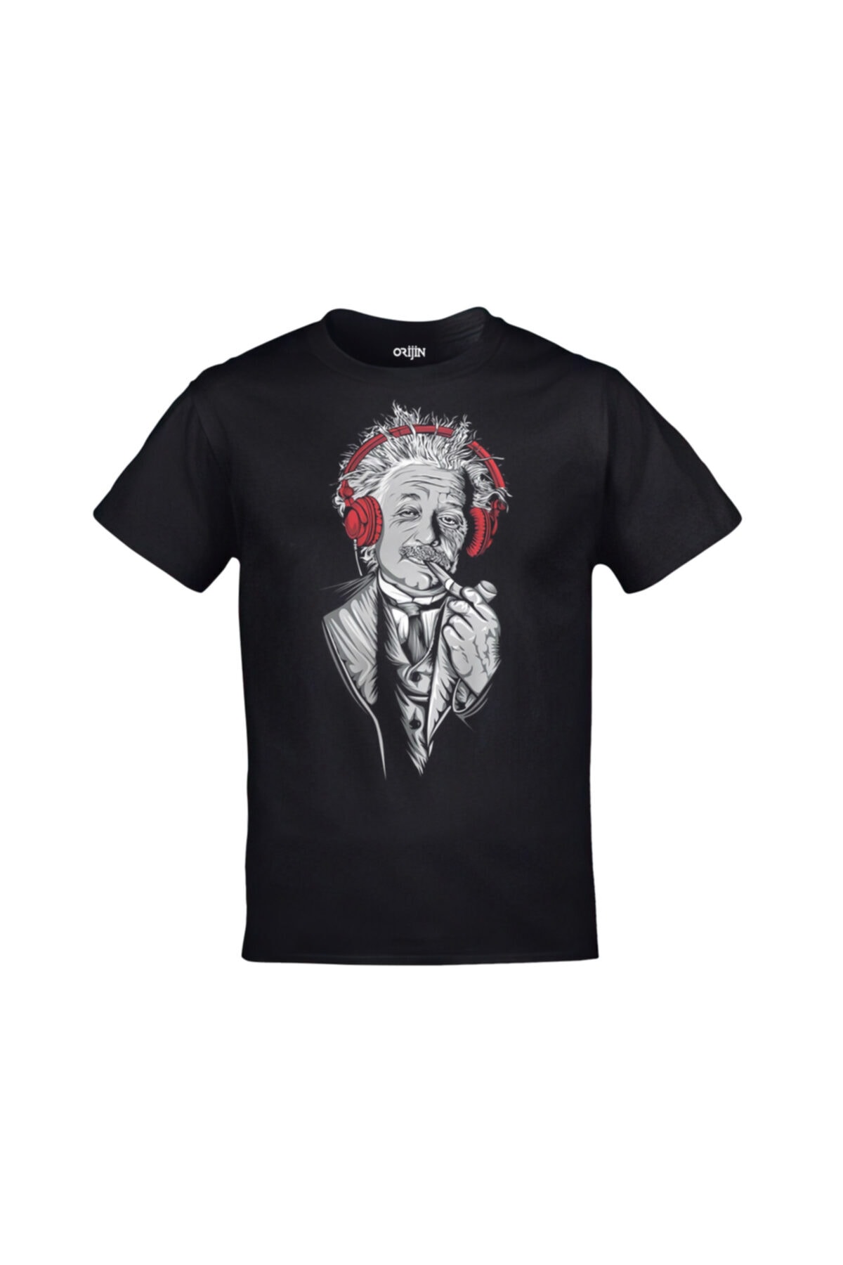 Unisex Siyah Albert Einstein Kulaklık Baskılı Tshirt