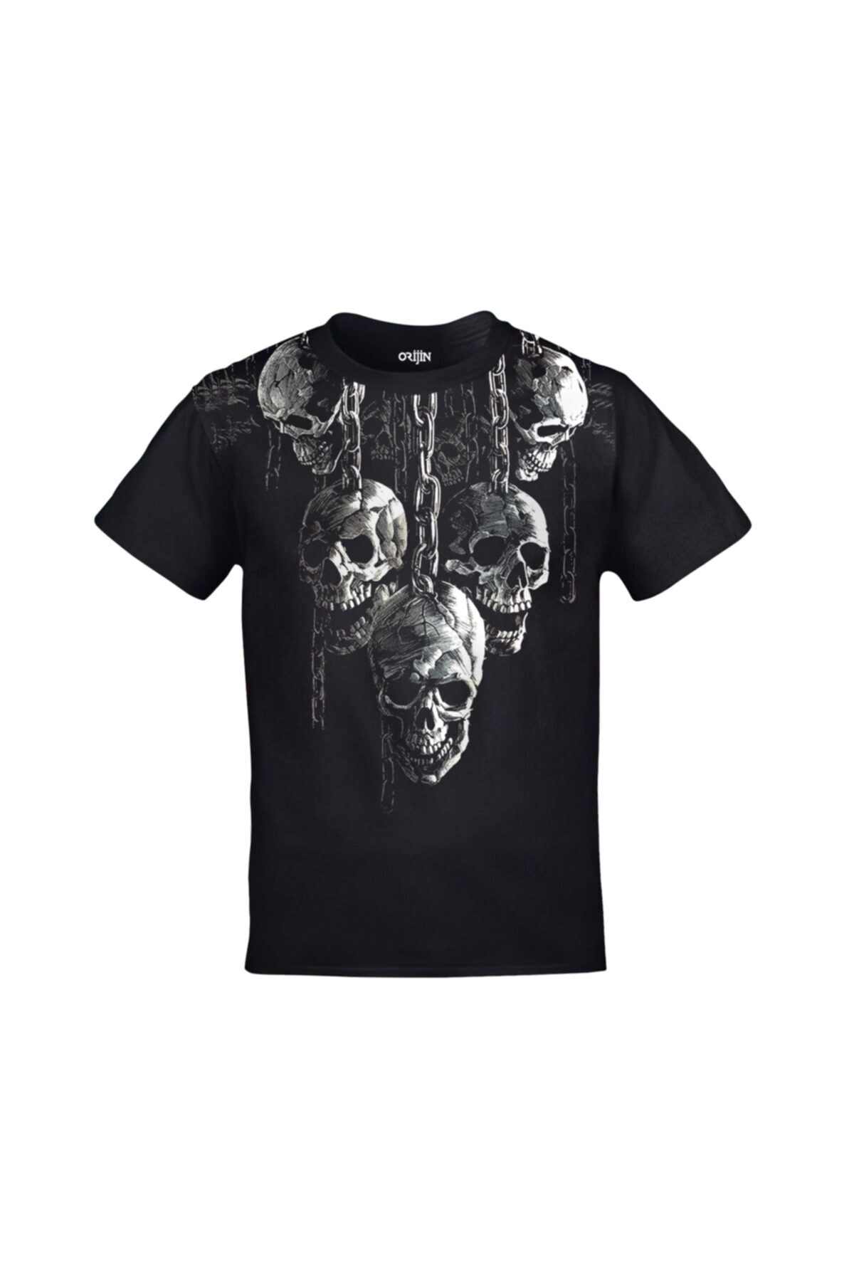 Unisex Siyah Zincirli Kurukafalar Baskılı Tshirt