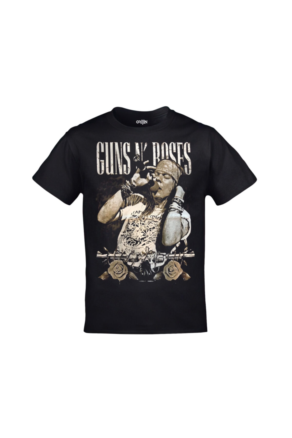 Unisex Siyah Guns N’ Roses Axl Rose Unisex Ön Arka Baskılı Tshirt