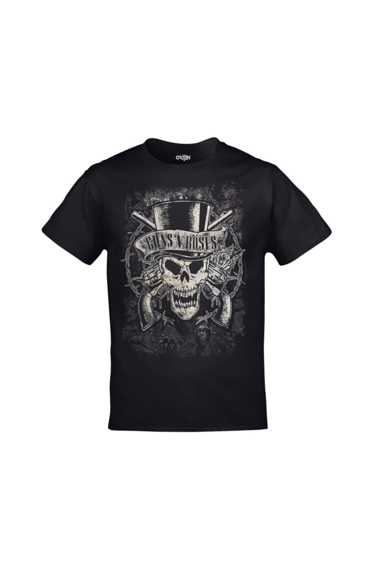 Unisex Siyah Guns N’ Roses Kurukafa Ön Arka Baskılı Tshirt