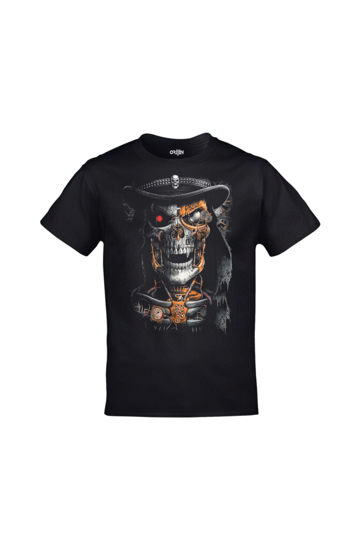 Unisex Siyah Kurukafa Terminatör Baskılı Tshirt