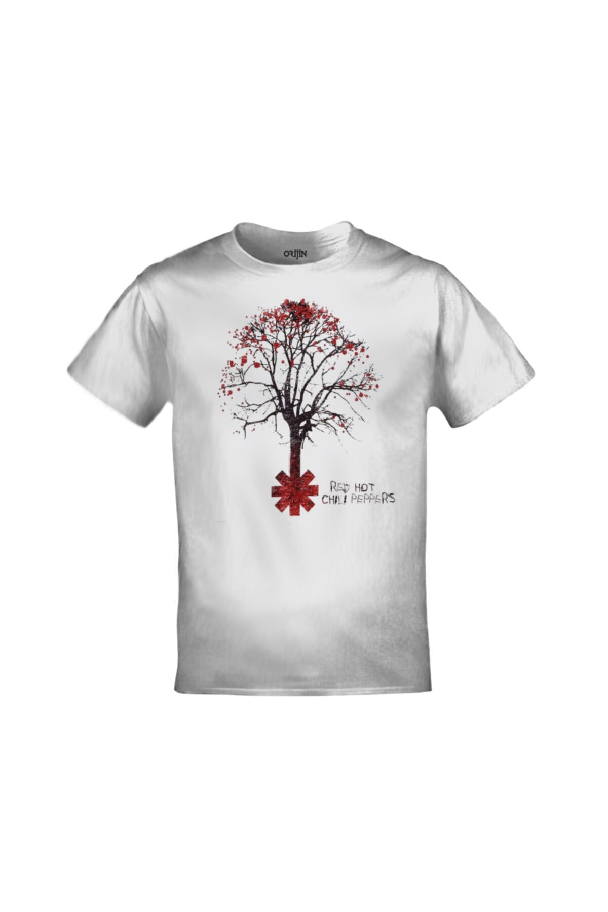 Unisex Beyaz Red Hot Chili Peppers Ağaç Baskılı T-shirt