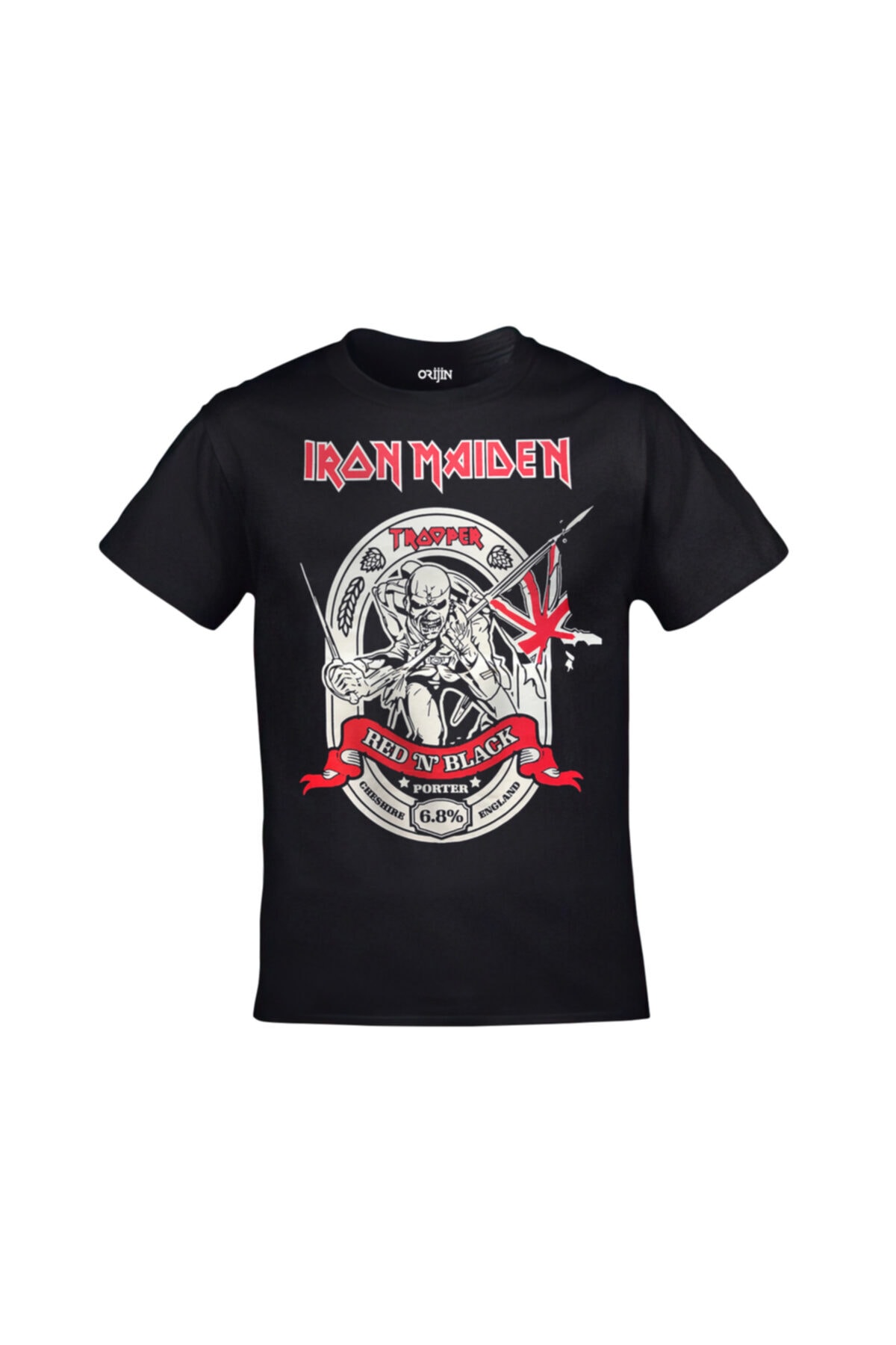 Unisex Siyah Iron Maiden Trooper Red N Black Baskılı Tshirt