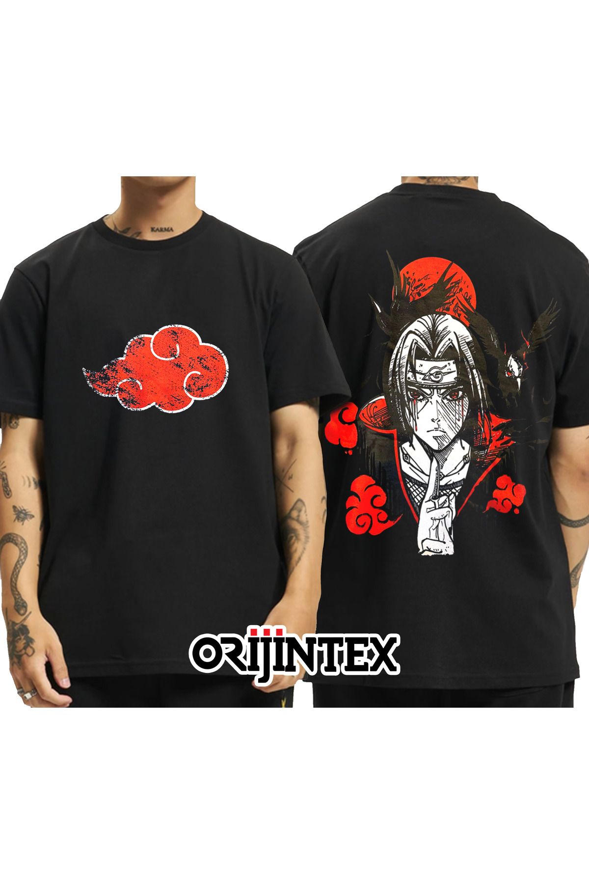 Naruto Uchiha Itachi Akatsuki Ön Arka Baskılı Unisex Siyah Tshirt