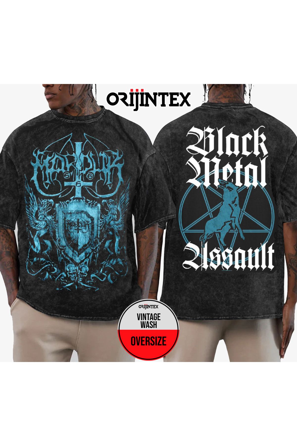 Marduk Black Metall Assault Ön Arka Baskılı Yıkamalı Oversize Vintage Tshirt