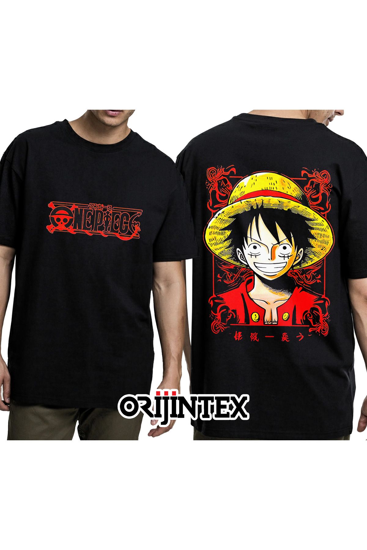 One Piece Monkey D. Luffy Ön Arka Baskılı Siyah Tshirt