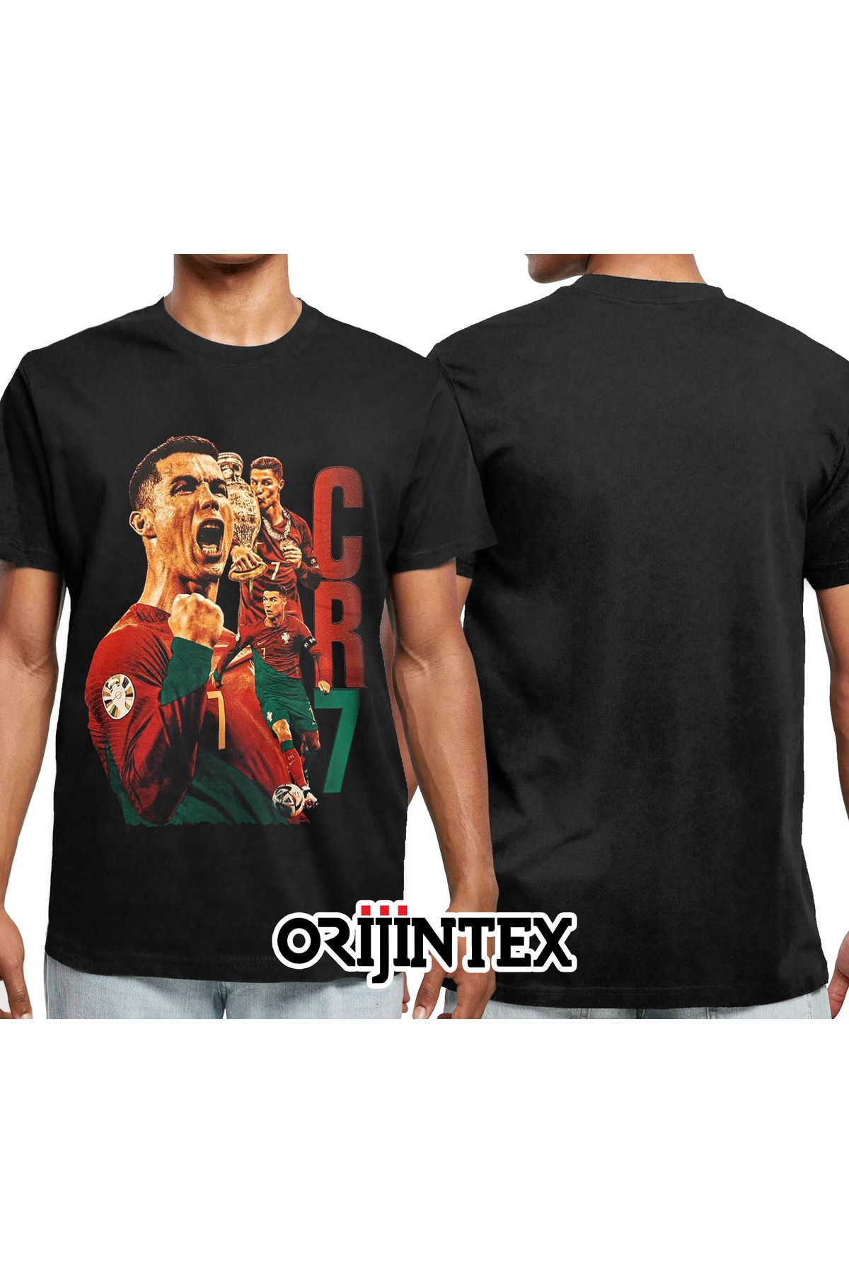 Cristiano Ronaldo CR7 G.O.A.T Baskılı Siyah Tshirt