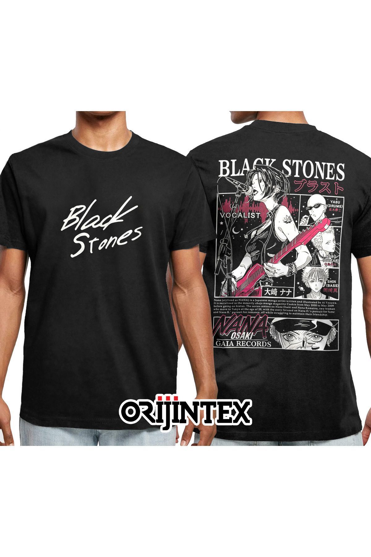 Black Stones Nana Osaki Vocalist Ön Arka Baskılı Unisex Siyah Tshirt