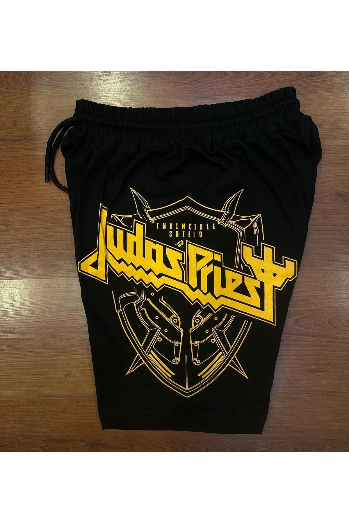 Judas Priest Invincible Shield Baskılı Unisex Siyah Şort