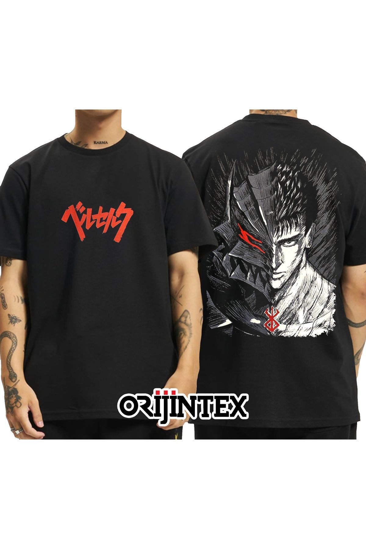 Berserk Guts Ön Arka Baskılı Unisex Siyah Tshirt