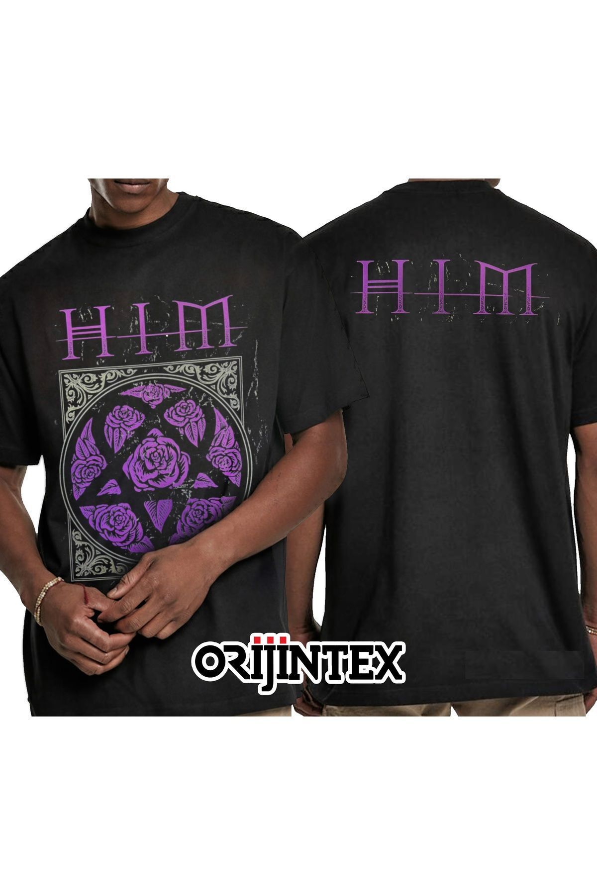 HIM Ön Arka Baskılı Unisex Siyah Tshirt