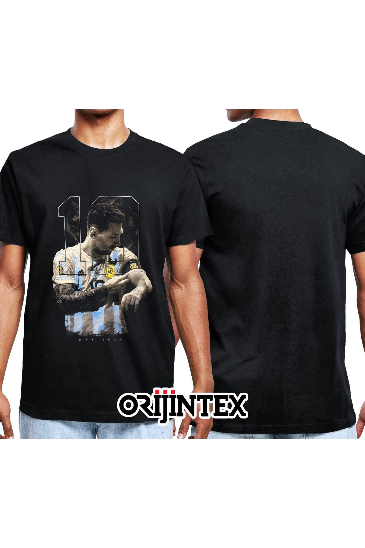 Lionel Messi G.O.A.T Baskılı Siyah Tshirt