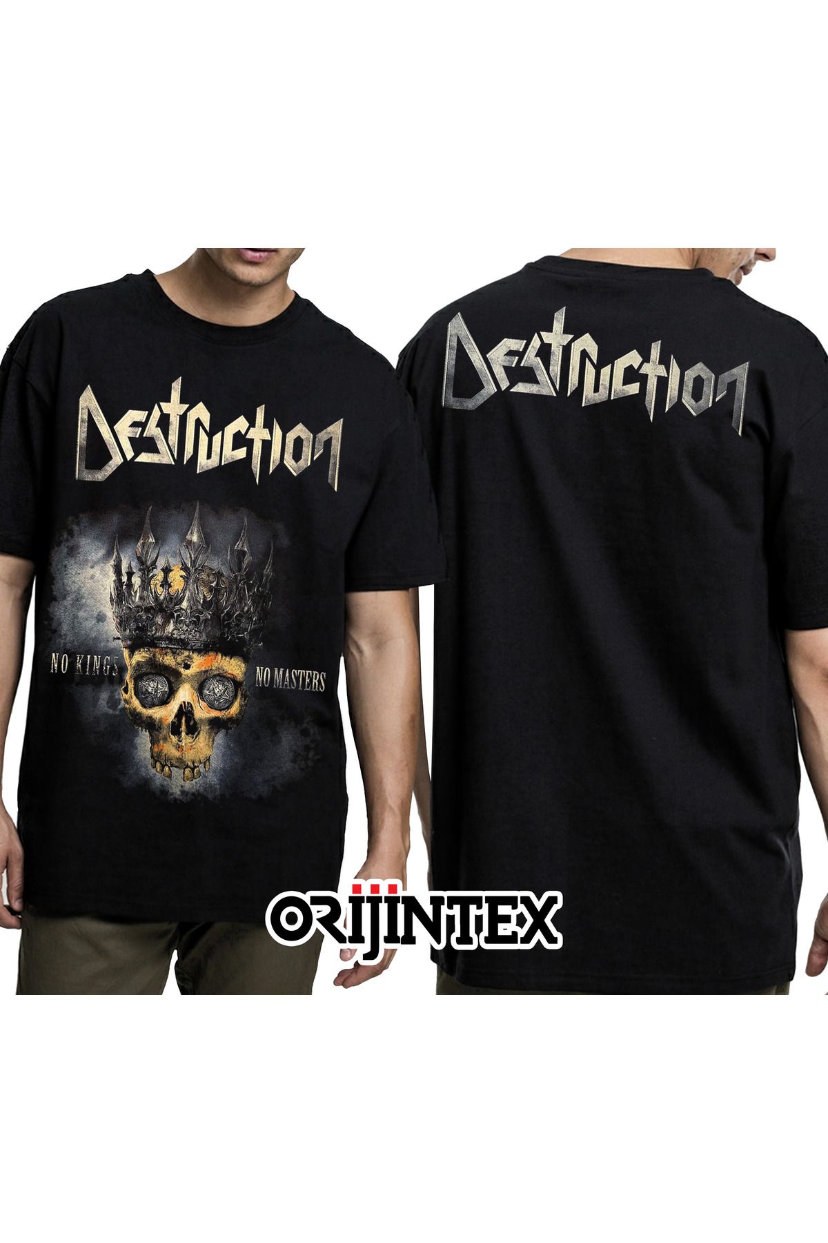 Destruction No Kings No Masters Ön Arka Baskılı Siyah Tshirt
