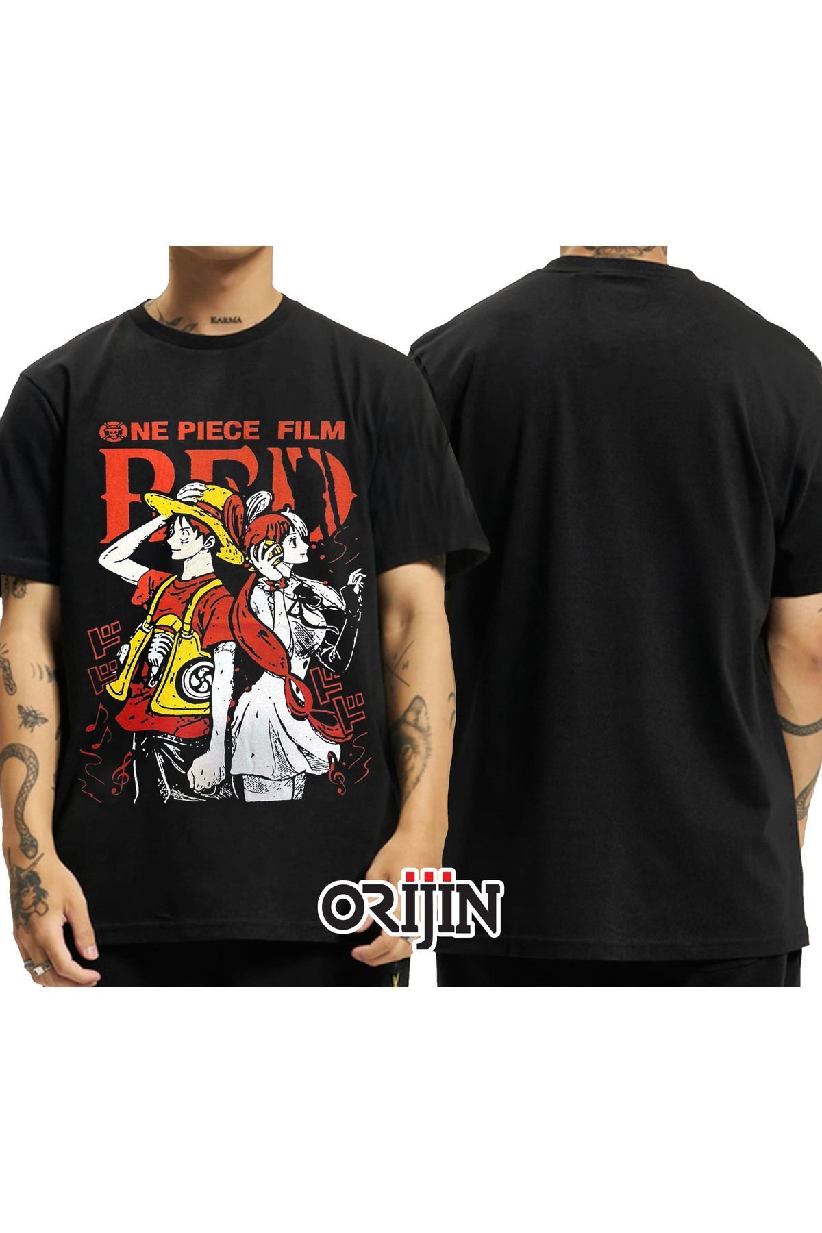One Piece Film Red Monkey D. Luffy Uta Baskılı Unisex Siyah Tshirt