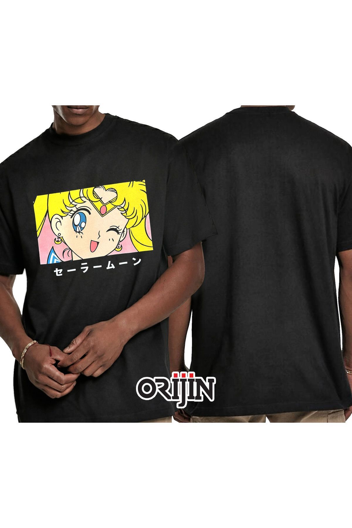 Sailor Moon Blink Anime Baskılı Unisex Siyah Tshirt