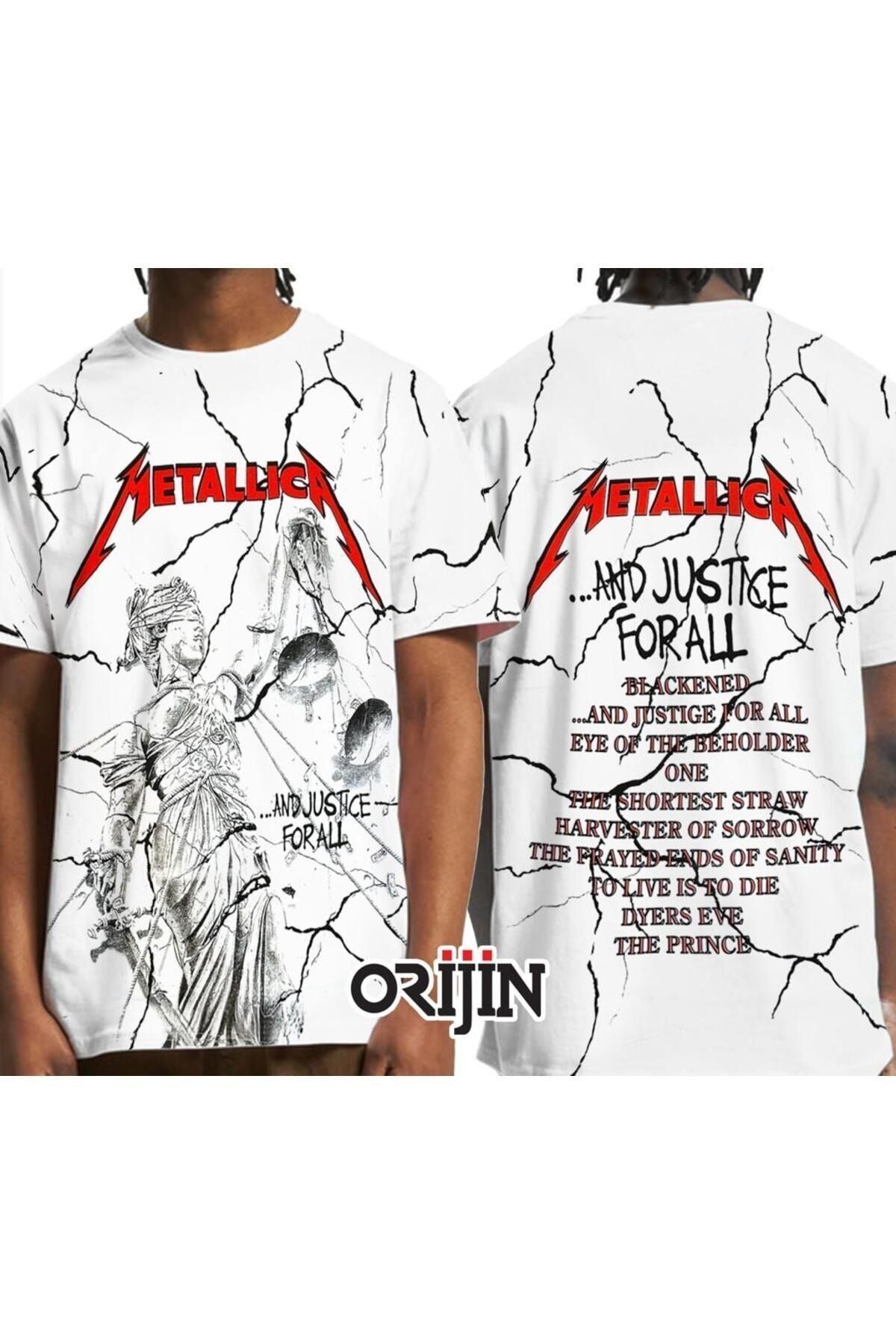 Metallica And Justice For All Over Baskılı Unisex Beyaz Tshirt