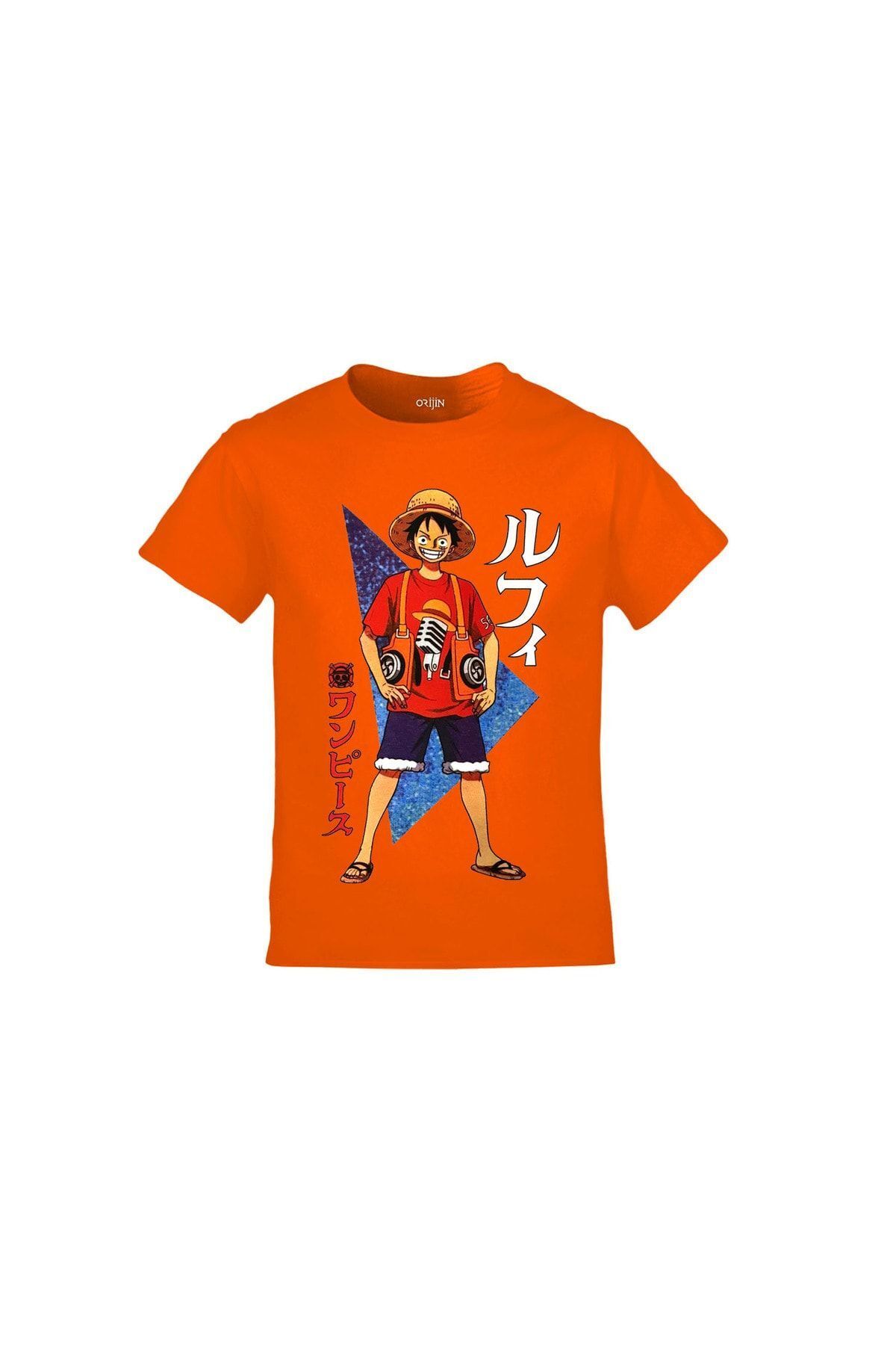One Piece Monkey D. Luffy Baskılı Turuncu Çocuk Tshirt