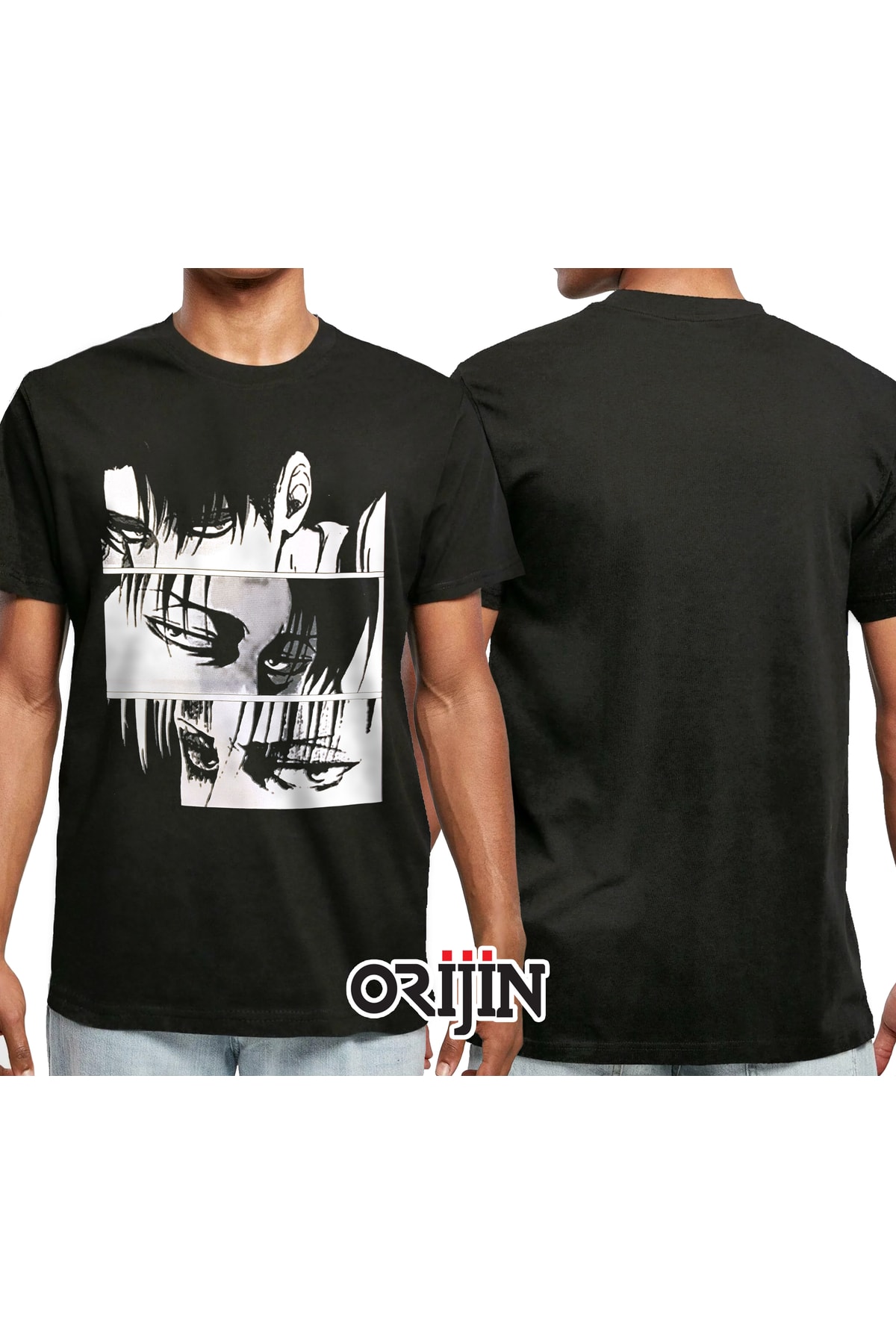 Attack On Titan Eyes Of Characters Baskılı Unisex Siyah Tshirt