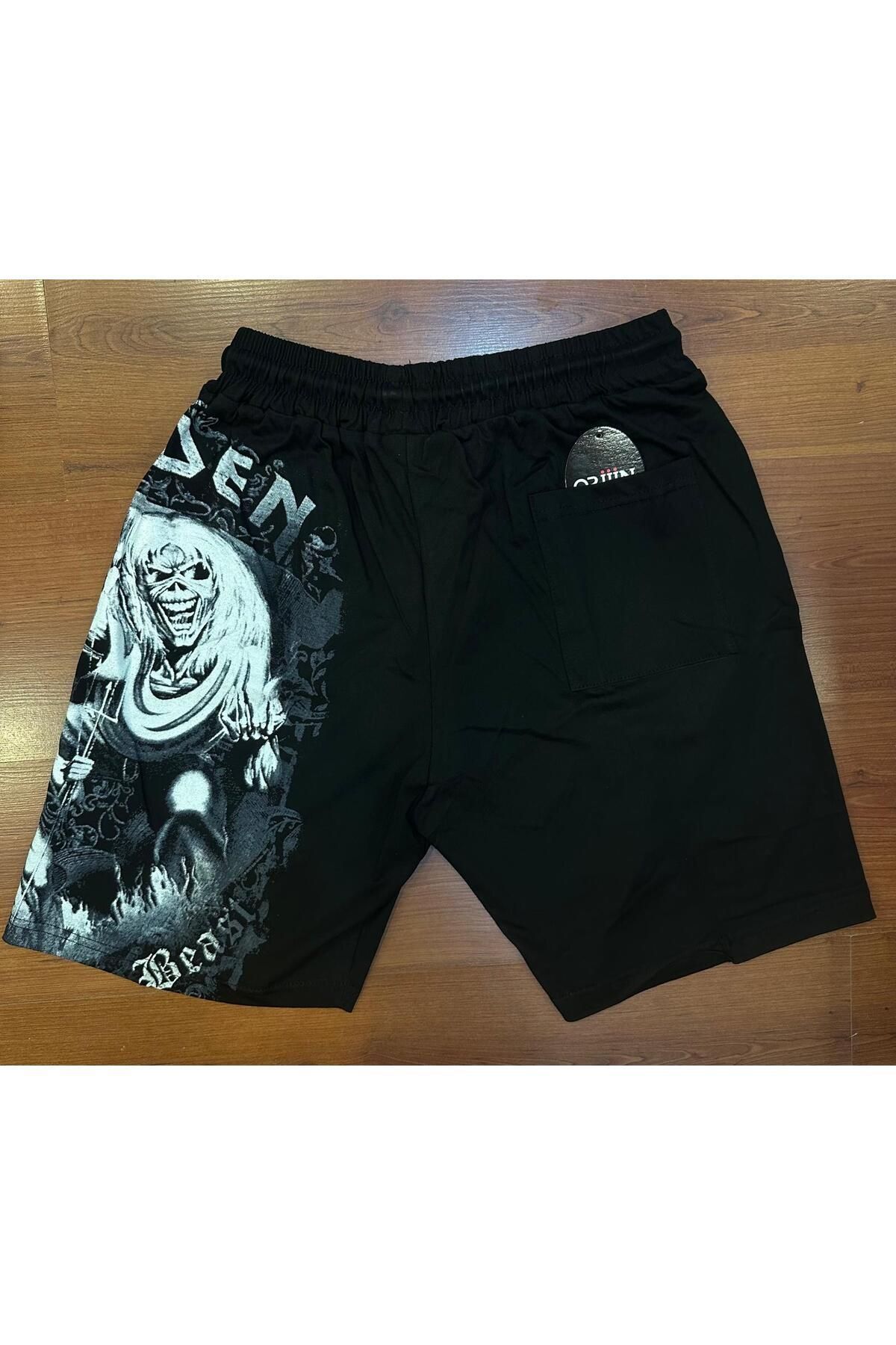Iron Maiden Number of The Beast Baskılı Unisex Siyah Şort
