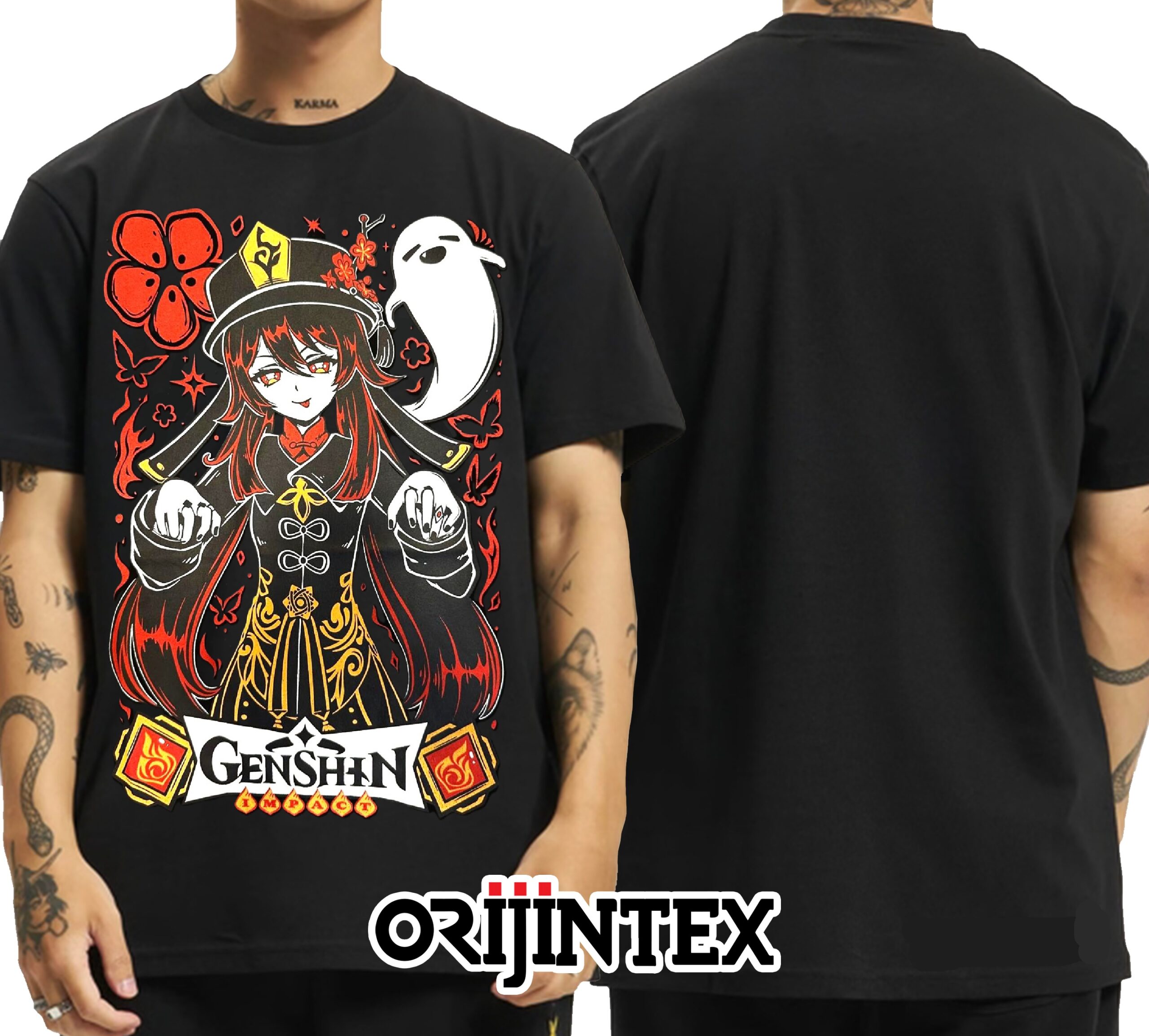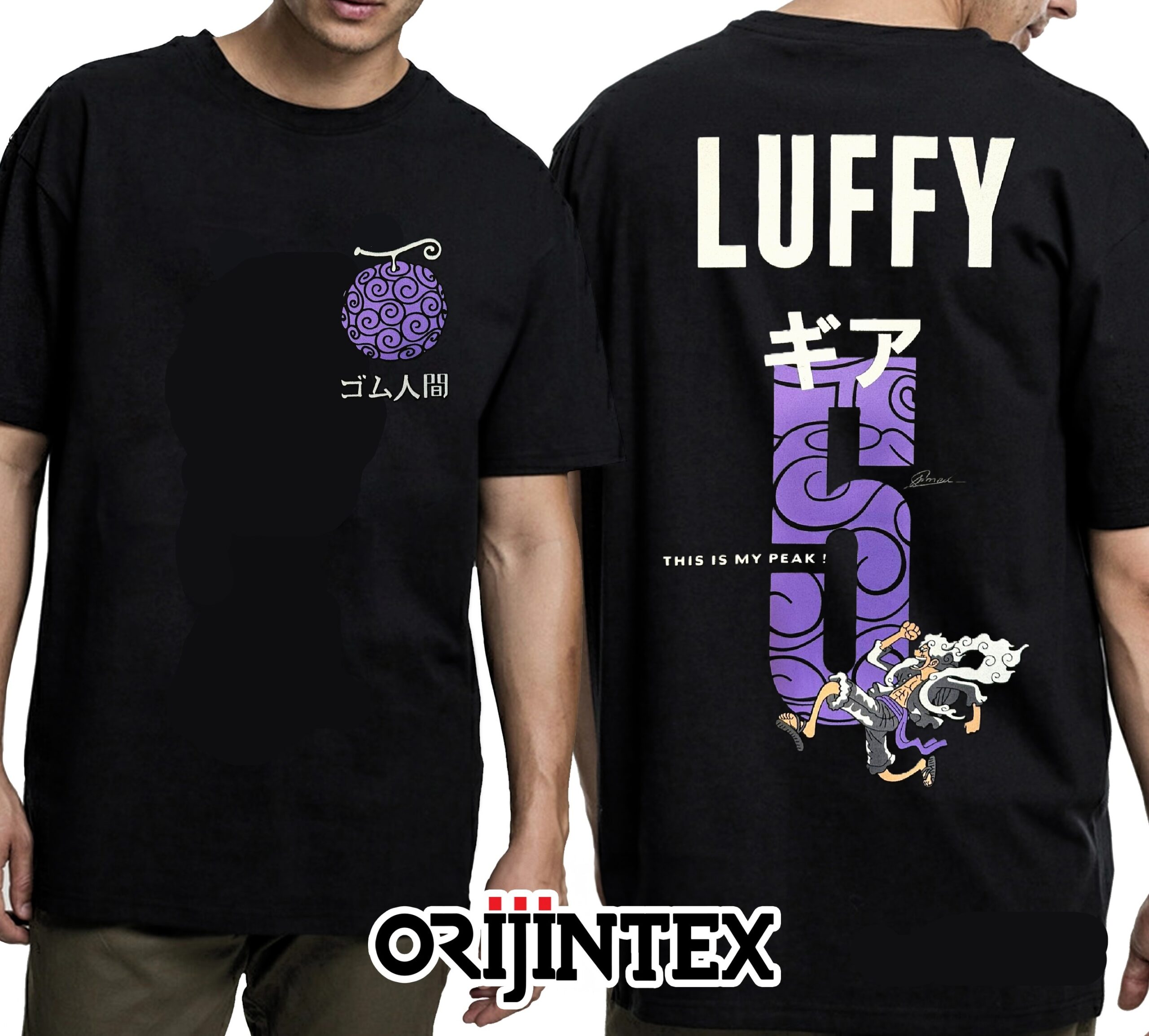 One Piece Monkey D. Luffy Smile Ön Arka Baskılı Unisex Siyah Tshirt