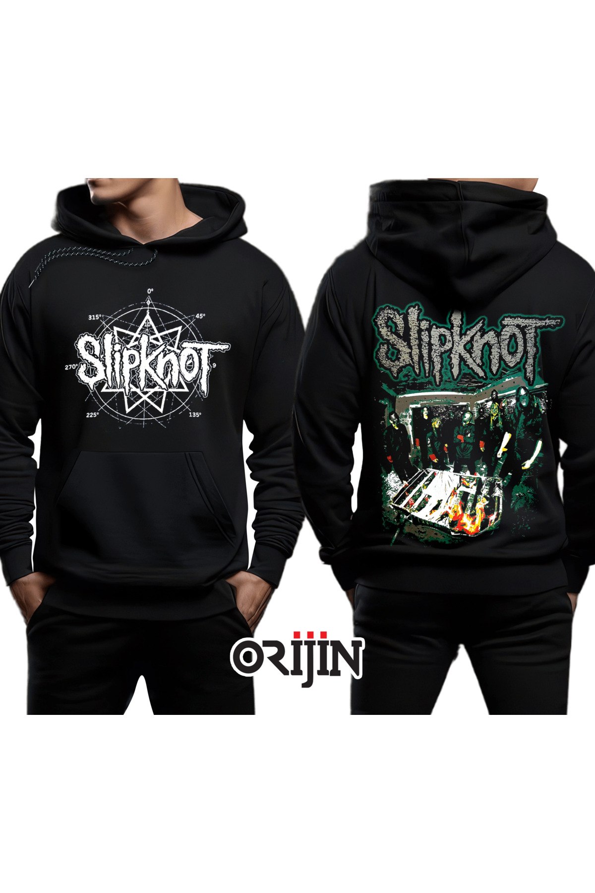 Slipknot Ön Arka Baskılı Siyah Kapşonlu Sweatshirt